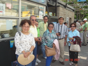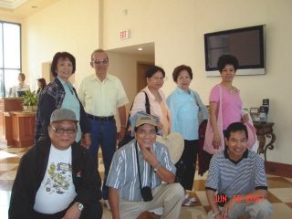 Tim Evangelista came at exactly 6:40 am and we headed to our meeting place. We stopped briefly for a cup of coffee and we were talking about some of the classmates attending. We got in perfect time and sure enough, Dely Calbes-Asimont and party (Lee, Jack and Eleanor Thomson) were coming in at the same time as well as the others. Julie Manipol-Riggan and Matee, Alice and Dave Mendoza-Viera had already checked-in. Jesse De Leon was the first one to greet me.Then Dora Balquiedra-Elizaga (Dora's niece and niece's husband), Alice and Dave, etc... Naturally, we started posing for pictures while the others were checking in. In short span of 20 minutes we got warmed up to one another.(Sad note: Vilma and Rafael Mariano-Calonzo got stranded in a New Jersey Airport due to a storm) Jokes flying around left and right, and really, Dely made us laugh so loud that the Hotel concierge had to restrain from making so much noise!!! I tell you this is a great feeling!!! Ernie and his guests the Santiago family showed up to join the fun!