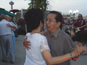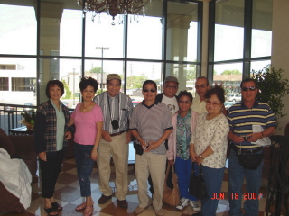 Shortly after church and back at the Comfort Inn Lobby, Vilma and Rafael Mariano showed up with a small balik-bayan box. (Joke only- hehehe!) Looks like their luggage got lost in transition and they had no other clothes save and except what their wearing since yesterday while sleeping at the airport!!! We are indeed very happy that they both made it safe in coming. They both have great sense of humor and under the circumstances they made us laugh by laughing at themselves!!! I am sure you know what I mean!!! Then we headed for the Le Noir!!! We had the pleasure of the company of the two big boys Jack and Lee at lunch. Then we headed to be on our own and we dispersed to different groups. Some headed straight to the Casino, some to the parkettes, some to the falls! Back to the Hotel freshen up and headed for My Cousin Vinny's Restaurant at 7pm. There we saw Elmer Manzo and his wife Yolanda his son and daughter-in-law. Elmer took a big pause in saving souls, came to join us for thie lovely reunion!!! Now that eally was a great honor for all of us!!! More picture taking, eating, and more picture taking!!! Minda and Weldon had to leave, as well as Elmer and Family. Shortly after they have left, the combo (Rock and Roll Musicians announced and invited every father to dance! Our group took this challenge without batting an eye. David and Alice, Rafael and Vilma and Myself and Becky responded with gusto on a slow soft music dance. Then all of a sudden he (the singer) told everybody to stay on the dance floor for a rock music (the nerve of this guy, huh!!!) Not a problem our group showed them how!!!! However, he went back to his kind of music and we rejoined the others in our group for more conversation and more pictures!! This digital age is something else, but terrifically wonderful!!! Then back to the CI lobby for more conversation!!!