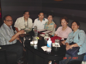 At 9:20 am we were all walking towards the church. (What else is new - change of plan. Our Lady of Peace Church instead of St. Marys due to earlier start of mass.) Heard mass, and after mass we even had the priest gave us blessings for this reunion and the coming big one!!! "Happy Father's Day!!! More picture taking! At the same time Rene Ricafranca showed up at the hotel lobby! Met Rene at the lobby, more pictures and again change of plans! We all went straight to the Casino to have lunch at a restaurant called Noir! Wow French Fine Dining just for lunch? Just kidding this is really an excellent Chinese lunch. A few minutes later when we were sitting down and started eating, Minda and Weldon Arias Reyes showed up! Now I tell you all, this is a very special thing they did, as Minda is a very busy person this time of the year and she wonderfully took time off just to be with us!! I am having big goose bumps while I am telling you this as this feeling I have is priceless!!! More picture taking! I could not believe we had overstayed at this rstaurant, The maitre' D was kind enough to allow us. Then on our own to freshen up.To be continued::